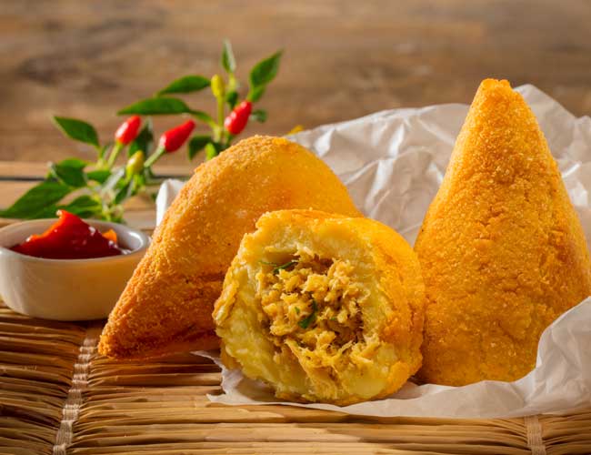 Tamanhos: 170g (coxinhas) e 150g os outros salgados